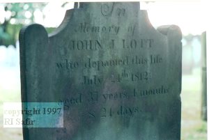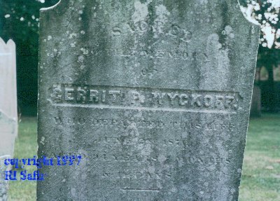 replaced an Octagonal Church in 1794.OK - Now for the Cemetary. Many of the most famous names in Brooklyn lore are represented in this burial ground. One Block South of the Church is a small street called Lott Street. Here is Tombstone of John J Lott who died just as the War of 1812 was coming to a close. This Stone is unusual because it is in English and fairly good shape.